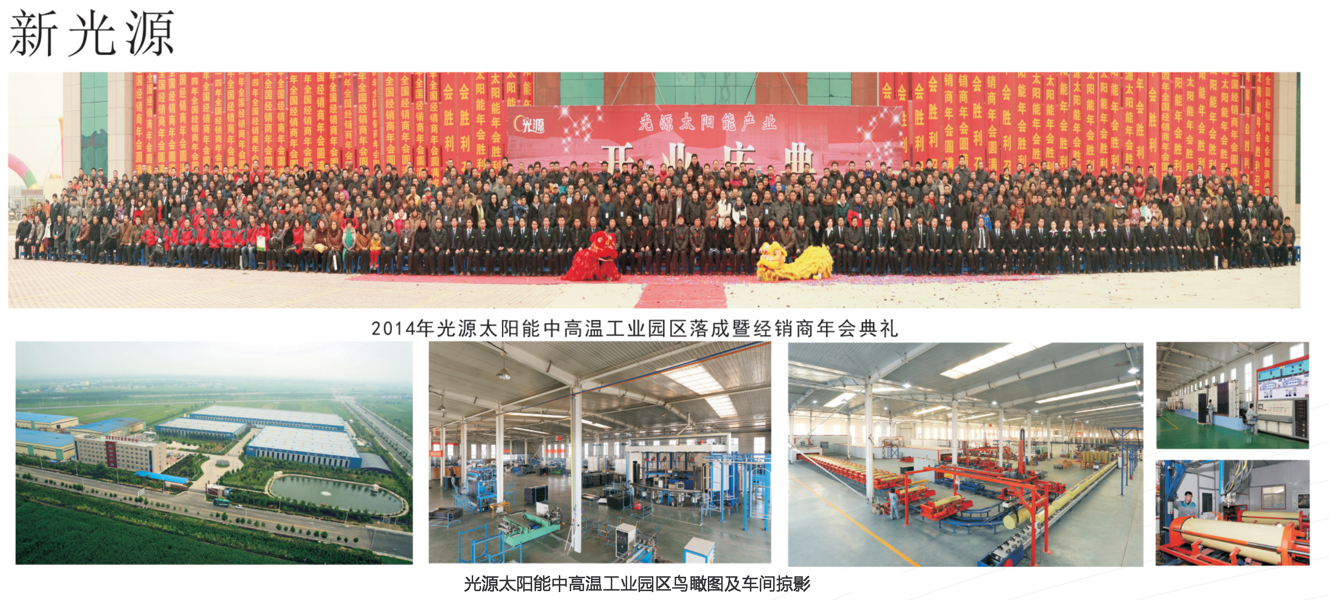 2013年12月光源公司搬遷到新廠區(qū),如今的光源公司,以黨的路線方針和政策為指導(dǎo),以科技發(fā)展與創(chuàng)新為契機(jī),以太陽(yáng)能開發(fā)與利用為訴求,不僅夯實(shí)了太陽(yáng)能熱水系統(tǒng)等傳統(tǒng)產(chǎn)品的基石,更在新能源產(chǎn)品的開發(fā)中屢戰(zhàn)佳績(jī)。