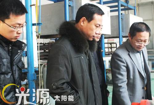 祁主任一行饒有興致地參觀了太陽能熱水器生產(chǎn)流水線,并就校企合作、定向培養(yǎng)、學(xué)生實(shí)習(xí)與就業(yè)等與總經(jīng)理劉迎波進(jìn)行了座談與交流。