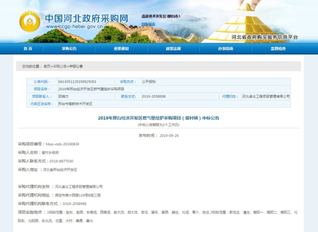 中標2019年邢臺經(jīng)濟開發(fā)區(qū)燃氣壁掛爐采購項目(留村鎮(zhèn))!