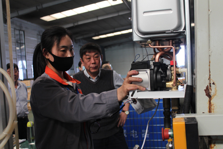 接著,焦世清主任來到公司壁掛爐生產(chǎn)車間,實(shí)地考察了國(guó)家支持技改項(xiàng)目---煤改氣壁掛爐生產(chǎn)線。焦主任囑托公司,要繼續(xù)做好產(chǎn)品,保證科學(xué)技術(shù)在世界的領(lǐng)先地位。