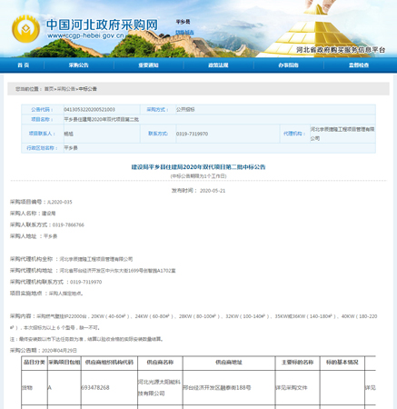 光源公司憑借完善細致的服務(wù)成功中標建設(shè)局平鄉(xiāng)縣住建局2020年雙代項目第二批,這兩次連續(xù)中標既是對光源高標準高質(zhì)量產(chǎn)品的認可,這對光源來說既是難得的機遇更是嚴峻的挑戰(zhàn)。