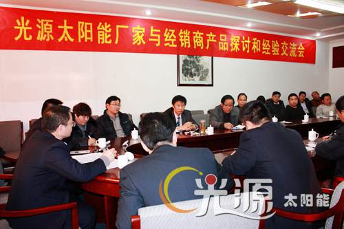 次日上午9點(diǎn)30分,光源太陽(yáng)能經(jīng)銷商代表與該公司各部門代表舉行了座談會(huì)。座談會(huì)上,大家暢所欲言,提出產(chǎn)品在研發(fā)、生產(chǎn)、銷售、售后等各環(huán)節(jié)的意見和建議,使各部門更深一步地了解一線市場(chǎng)信息,傾聽經(jīng)銷商的心聲和呼聲,有針對(duì)性地做好生產(chǎn)、技術(shù)、物流、宣傳、促銷等工作。